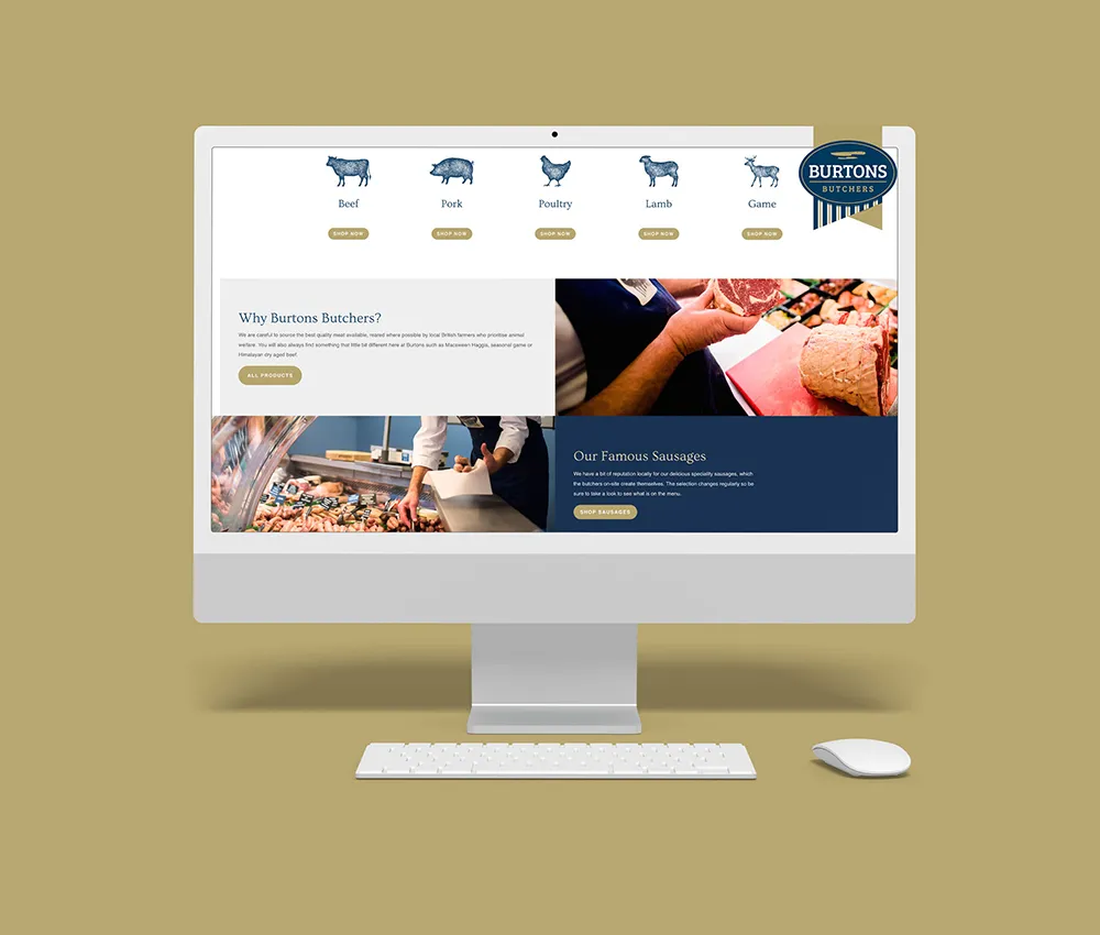 Although Burtons had a trusted local reputation, they lacked a strong digital presence and had no online platform to sell products. This limited their reach, making it difficult for customers outside the local area — or those unable to visit the store in person — to access their high-quality meats. Their online identity also didn’t reflect their long history or family heritage.