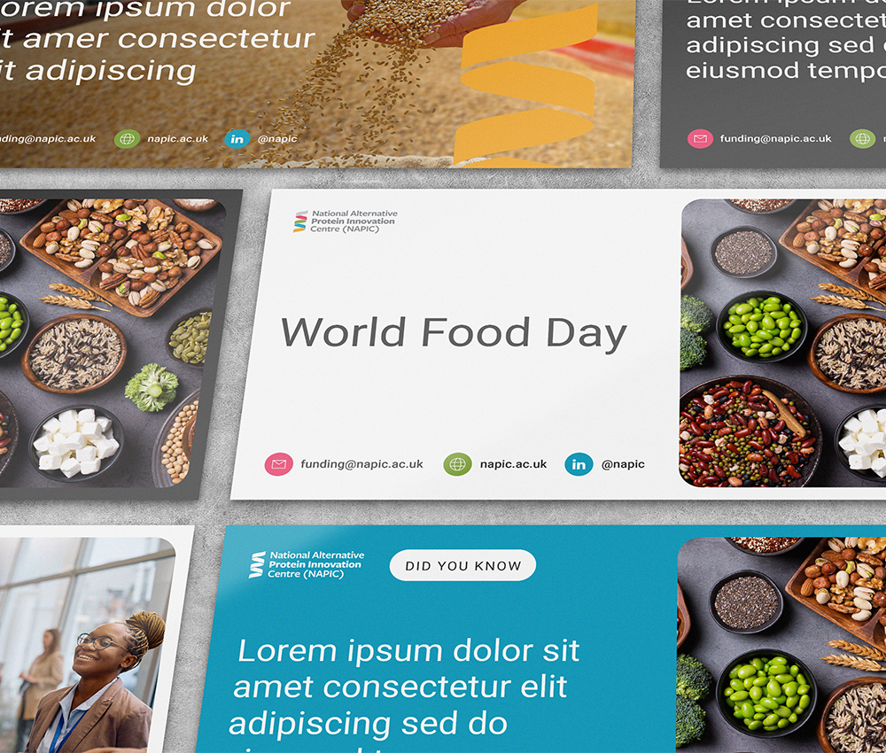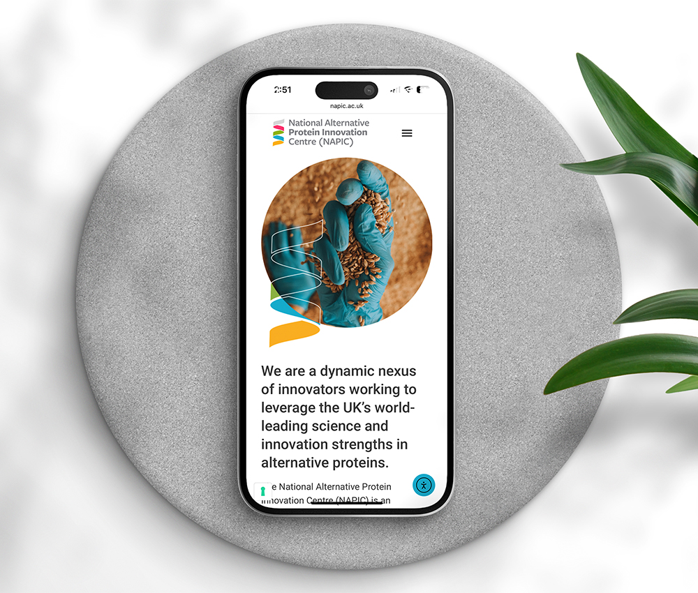 We partnered with the National Alternative Protein Innovation Centre (NAPIC), a collaborative initiative led by researchers from the University of Leeds, James Hutton Institute, University of Sheffield, and Imperial College London, dedicated to developing sustainable, planet-friendly alternatives to animal proteins. Identity Creative supported NAPIC in creating a cohesive brand identity, website, and marketing materials to launch their centre and drive engagement with stakeholders, funders, and the wider research community.