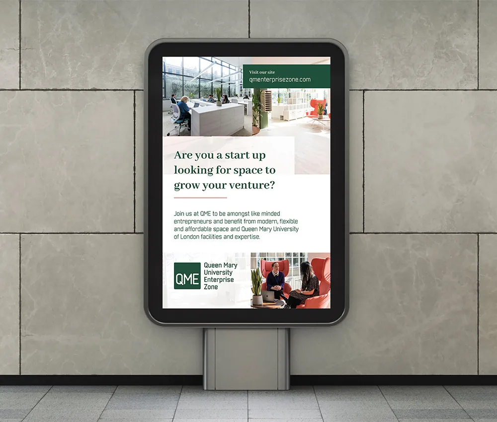 The result is a cohesive brand and digital identity that positions QME as a leading hub for innovation in East London while staying connected to the Queen Mary University of London brand.
