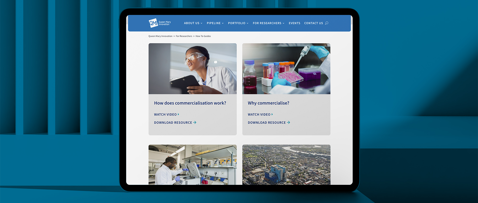We’re excited to announce the launch of a new website design and development project for Queen Mary Innovation (QMI), the commercial arm of Queen Mary University of London (QMUL). This new digital platform reflects QMI’s mission and brings their brand closer to QMUL, creating a smooth user experience (UX) and a modern user interface (UI).