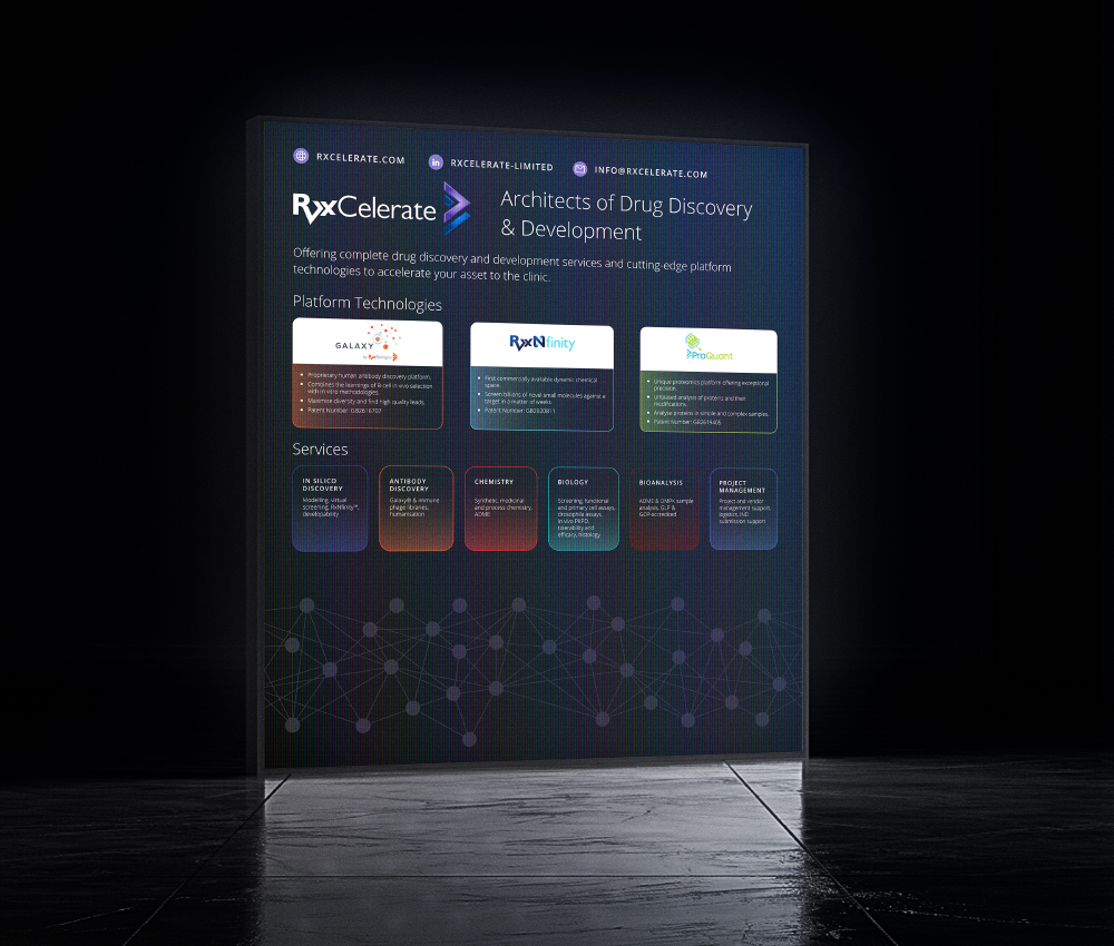 We partnered with RxCelerate, an award-winning outsourced drug development company based in Cambridge, UK, delivering complete preclinical programmes. Their comprehensive services span in silico modelling, medicinal chemistry, in vitro and preclinical capabilities, and project management, providing innovative solutions that save clients time and money.