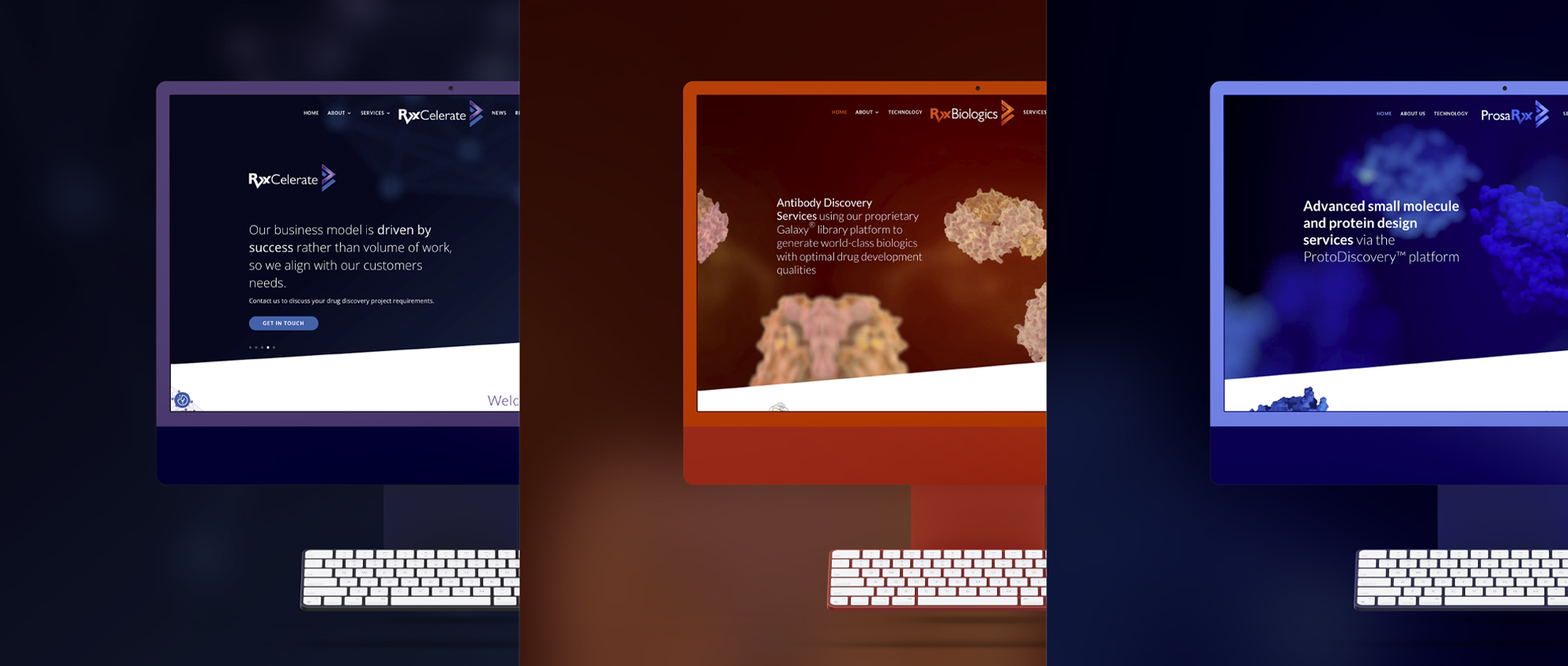 Identity Creative designed and developed a bespoke website aligned with the RxCelerate Group branding, which was also used to create dedicated websites for RxCelerate, RxBiologics, ProsaRx, and ProQuant.