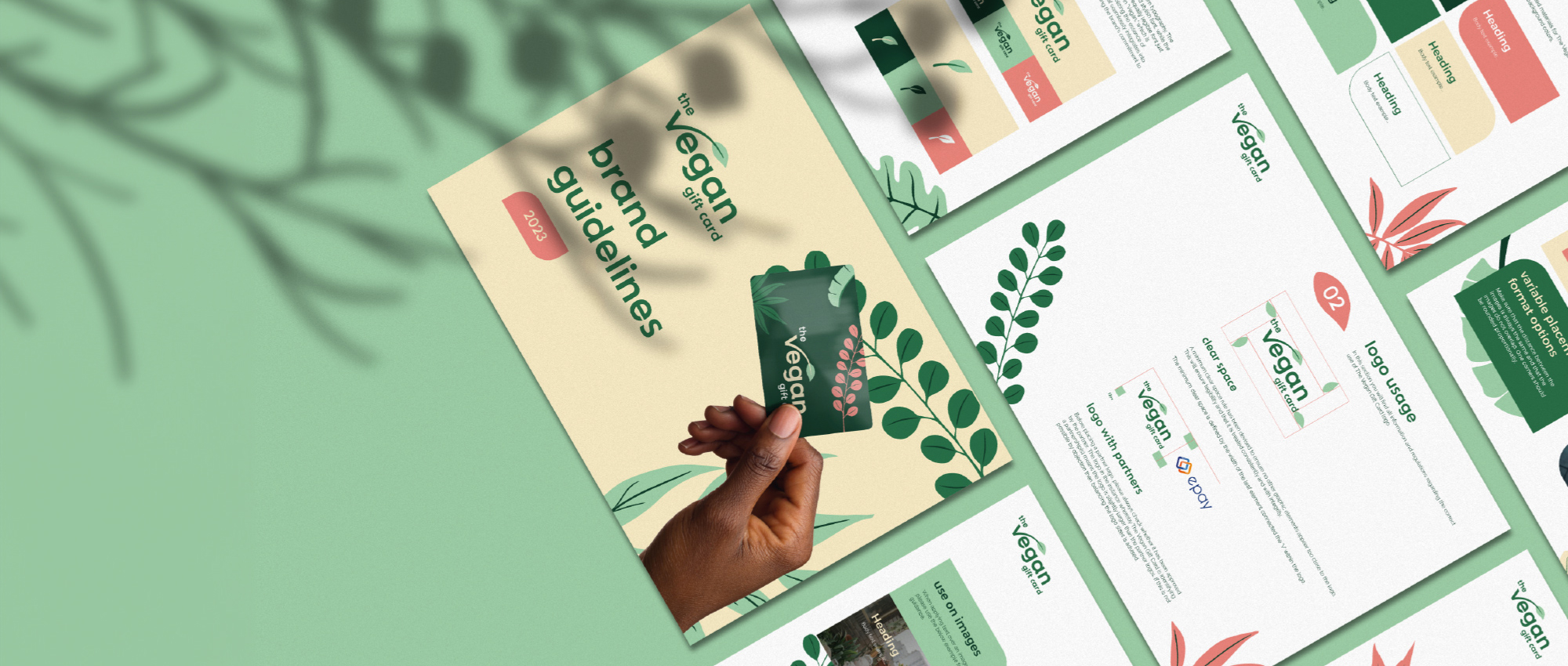 The outcome is a bold and contemporary brand that communicates The Vegan Gift Card’s plant-based focus, stands out on-shelf, and aligns with partner brands. This cohesive identity captures consumer attention and supports a successful product launch.